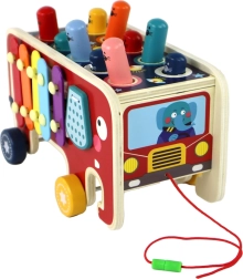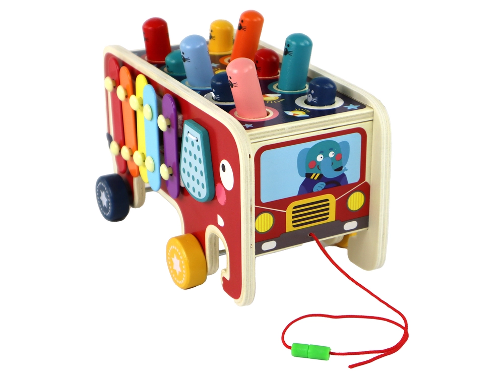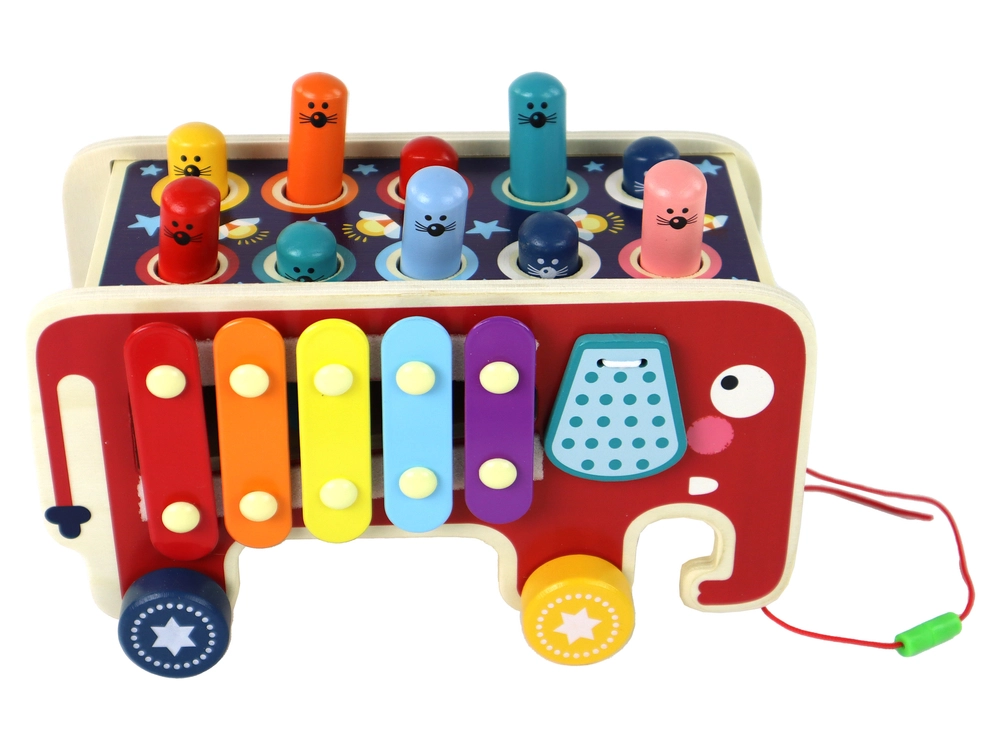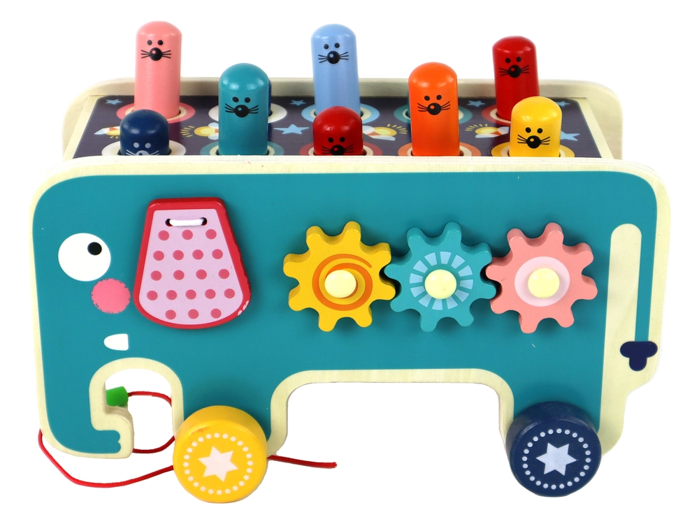 Tahací slon s doplňky pro klepání kladívky přináší rytmus, koordinaci a spoustu smíchu při každém kroku.