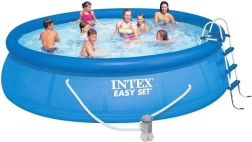 Užijte si léto naplno s nadzemním nafukovacím bazénem INTEX Easy Set o průměru 4,57 m a výšce 1,07 m. Sestavení je rychlé a jednoduché – stačí nafouknout horní prstenec a napustit vodu, která bazén sama postaví. Součástí je kompletní sada: kartušová filtrace 3 785 l/h, bezpečnostní žebřík, krycí plachta a podkladová plachta pro čistou a pohodlnou koupací sezónu.