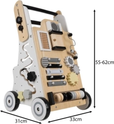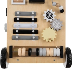 Dřevěný chodítko pusher KRUZZEL s aktivitami a tabulí Montessori
