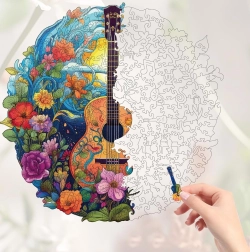 Toto krásné puzzle s motivem kytary zdobené květinami je vytvořeno z kvalitního 5 mm dřeva, které je šetrné k životnímu prostředí a podtrhuje ekologicky uvědomělý přístup. Každý z 200 dílků je precizně vyřezán laserem, což zajišťuje snadné skládání a dokonalé střihy. Díky UV digitálnímu tisku je obraz jasný a bohatý na detaily, což zlepší váš zážitek ze skládání.