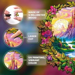 Objevte kouzlo skládání s dřevěnými puzzle s motivem kouzelného lesa. Tento set nabízí 200 jedinečných dílků z 100% FSC® dřeva s precizním laserovým řezáním a prémiovou kvalitou. Díky UV digitálnímu potisku vynikají realistické a živé barvy, které zaručí úžasný vizuální výsledek. Puzzle rozvíjí logické myšlení a jemnou motoriku a potěší děti i dospělé.