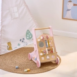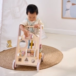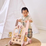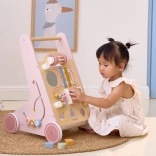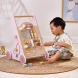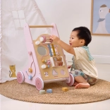 Představujeme Dřevěný chodítko pro batolata PolarB v růžové barvě, navržené pro děti od 18 měsíců. Kombinuje zábavné aktivity jako sledování v zrcadle, otáčecí kostky, třpytivé korálky, třídění tvarů a hraní na xylofonu. S tímto chodítkem budou vaše děti bezpečně objevovat svět kolem sebe.