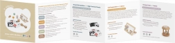 - Dřevo s certifikací FSC, papír/karton (kontrastní karty), další bezpečné materiály