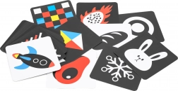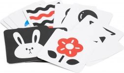 Série černobílých a červeno-bílých karet s jednoduchými tvary a obrázky přirozeně přitahuje dětský pohled. Podporuje fixaci, sledování objektu a časnou vizuální percepci – ideální pro novorozence a mladší kojence.