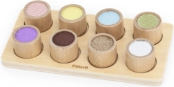 Dotyková deska s pestrými povrchy probouzí zvědavost a pomáhá dětem rozlišovat textury a barvy. Podporuje smyslovou integraci, slovní zásobu i jemnou motoriku prstů.