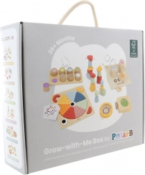 Objevte dřevěný vzdělávací box POLARB GROW-WITH-ME pro děti 36+ měsíců. Sada rozvíjí smysly, jemnou motoriku, kreativitu i emoce díky promyšleným aktivitám. Vyrobeno z ekologických materiálů a uloženo v praktickém přenosném balení s uchem.