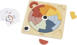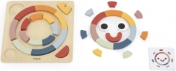 Dřevěná skládačka s výraznými barvami a předlohami učí děti plánovat, sledovat vzory a přesně skládat tvary. Trénuje logiku, trpělivost a koordinaci oko–ruka.