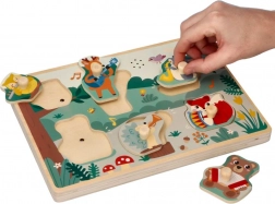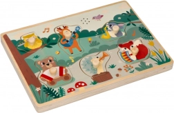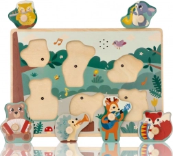 Tato dřevěná zvuková vkládačka s lesním motivem přináší dětem první setkání s hudebními nástroji hravou formou. Každý barevný dílek se zvířátkem má praktický úchyt pro snadné držení a po vložení na správné místo se ozve odpovídající zvuk, který motivuje k opakovanému hraní a objevování.