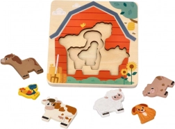 Objevte kouzlo farmy s vrstveným dřevěným puzzle, které je ideální pro malé objevitele od 18 měsíců. Děti skládají jednotlivá zvířátka do správných tvarů, trénují logické myšlení a procvičují koordinaci oko–ruka. Díky přehledným obrysům a sytým barvám se s puzzle snadno pracuje a učení je přirozeně hravé.