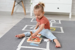 Vkládání dílků do odpovídajících výřezů posiluje prsty, koordinaci oko–ruka i trpělivost. Ideální pro malé ručičky od 18 měsíců.