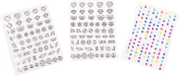 - 7× fix/lak s tenkým hrotem a štětečkem, 4× třpytky, samolepky (kontury a barevné puntíky), dekorativní kamínky/samolepky, 2× separátor prstů, pilníček ve tvaru srdce, mini vysoušeč nehtů