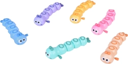 Boční klíček stačí několikrát otočit a housenka se sama rozjede. Děti sledují vlnivý pohyb, učí se principu příčina–následek a baví se při honičkách po podlaze.