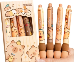 Sada propisek s kapybarou kombinuje zábavný design a každodenní funkčnost. Každá propiska je pečlivě zpracovaná, má elegantní povrchovou úpravu a sympatický motiv kapybary, který dodá vašemu penálu či pracovnímu stolu jedinečný charakter. Díky ergonomickému tvaru a pohodlnému úchopu se skvěle drží a neunavují ruku ani při delším psaní.