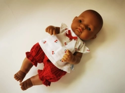 Tato elegantní mušelínová sada pro panenky 32 cm ozdobí každou dětskou hru. Lehký a prodyšný mušelín s motivem třešní je příjemný na dotek a snadno se udržuje. Výrobek je pečlivě ušit v Polsku a odpovídá evropským standardům bezpečnosti.