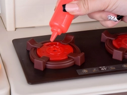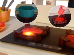 Varná deska simuluje vaření: svítící hořáky, bublající zvuky a jemná pára podněcují představivost a dělají hru ještě realističtější.