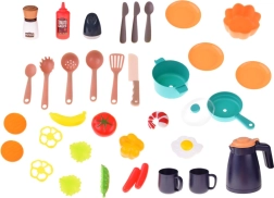 - 55 dílů příslušenství – hrnce, konvice, talířky, šálky, příbory, kořenky a makety potravin.