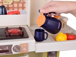 Tato dětská kuchyňka věrně napodobuje skutečnou kuchyň a motivuje děti k role‑play hře. Součástí je dřez s kohoutkem a oběhem vody, varná deska se světly, zvuky a efektem páry, digestoř a hodiny s pohyblivými ručičkami. Otevírací dvířka na lednici, troubě a myčce zvyšují realističnost a učí děti pořádek i organizaci.