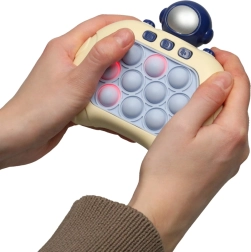 Tato interaktivní antistresová hra v designu astronauta kombinuje uklidňující „pop“ efekt s chytrou světelnou a zvukovou odezvou. Díky čtyřem režimům si děti procvičí rychlost reakce, soustředění i paměť a zároveň se skvěle pobaví. Kompaktní tělo a příjemné ovládání padne do ruky dětem od 6 let.