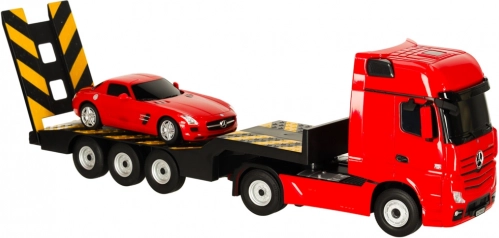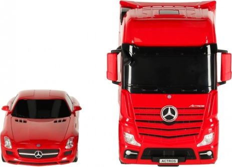 Rastar RC kamion MERCEDES-BENZ Actros se sportovním vozem SLS AMG 1:26 červený
