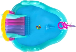 Součástí balení jsou i zábavné doplňky – 6 míčků, a kouzelná hůlka, se kterými si děti vytvoří vlastní herní scénáře. Praktický vypouštěcí ventil usnadňuje údržbu a sbalení po koupání.