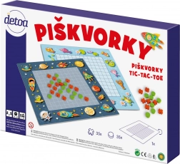 Oboustranné piškvorky od značky Detoa přinášejí nadčasovou zábavu v moderním kabátě. Překlápějte herní desku a vybírejte mezi vesmírným a vodním světem, klaďte kolečka a křížky, a snažte se co nejrychleji vytvořit řadu pěti symbolů vertikálně, horizontálně či diagonálně. Díky rychlým pravidlům je hra skvělá pro rodiny, cestování i školní družiny.