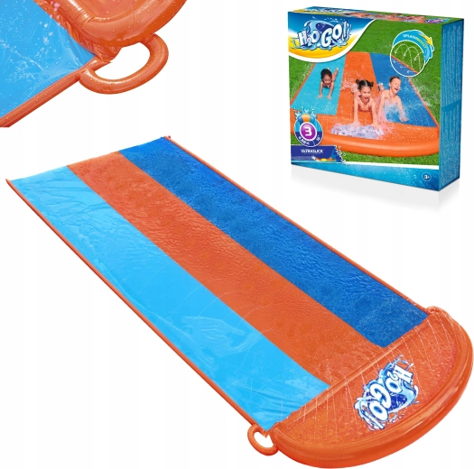 Rozjeďte léto naplno s vodním skluzem BESTWAY o délce 4,88 m a třemi jízdními pruhy pro závodní klání dětí. Integrované sprchy po stranách udržují povrch kluzký, stačí připojit zahradní hadici a zábava může začít. Odolný PVC materiál, měkká dopadová část a jednoduché zprovoznění bez nářadí zajistí bezpečné a nekonečné vodní radovánky pro děti od 3 let.
