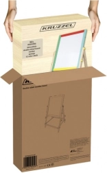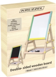 Oboustranná dětská tabule KRUZZEL spojuje kreativní zábavu a učení. Jedna strana nabízí křídovou plochu pro kreslení křídami, druhá bílou sucho stíratelnou plochu s magnetickou funkcí pro psaní popisovačem a práci s magnety. Otočný systém umožňuje rychlou změnu plochy pomocí šroubů s motýlky.