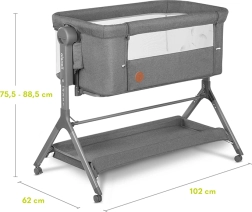 Odnímatelná bočnice umožňuje společné spaní s rodiči, což přináší nejen pohodlí, ale i bezpečnost díky připevňovacím pásům k posteli rodičů. Kromě toho oceníte i úložný prostor na hračky či potřebné věci a praktickou tašku pro snadné přenesení složené postýlky.