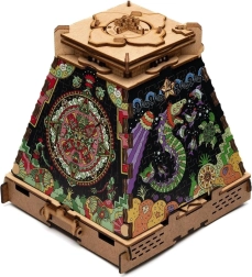 Instalace je intuitivní: překryjte původní obrázek černou vrstvou, připojte rámečky a postupně poskládejte 4 sady dílků – každou pro jednu stěnu pyramidy. Skládání zabaví jednotlivce i skupinu 1–4 hráčů na 90–120 minut a výsledkem je trvanlivá dekorace ze dřeva.