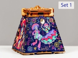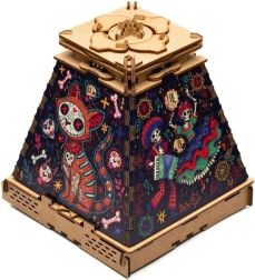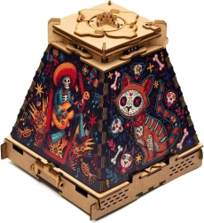 Proměňte svůj ikonický hlavolam Pyramida Slunce do barevné podívané s tematickým rozšířením Den mrtvých. Precizně vyřezané dřevěné dílky a sytý tisk vytvoří novou vrstvu, která zvýrazní design celé pyramidy a udělá z ní nevšední dekoraci. Rozšíření je určeno výhradně pro vzhled – nezasahuje do řešení původního hlavolamu.