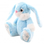 Roztomilý plyšový králíček v modré barvě potěší miminka i starší děti. Je měkoučký, s dlouhými oušky a vyššími detaily na tlapkách, ideální na mazlení a jako dárek od narození (0+).