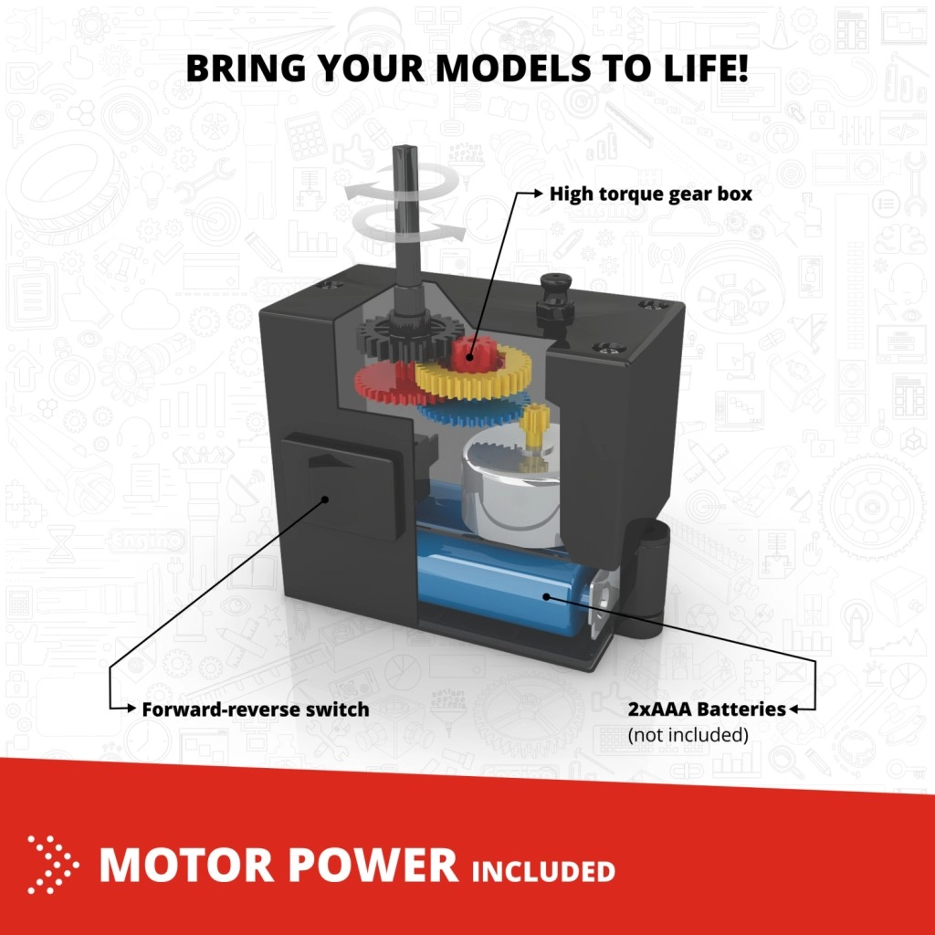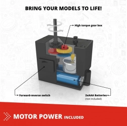 Součástí je motorek s nastavením směru pohybu. Oživte své modely a nechte je jezdit či pojíždět.