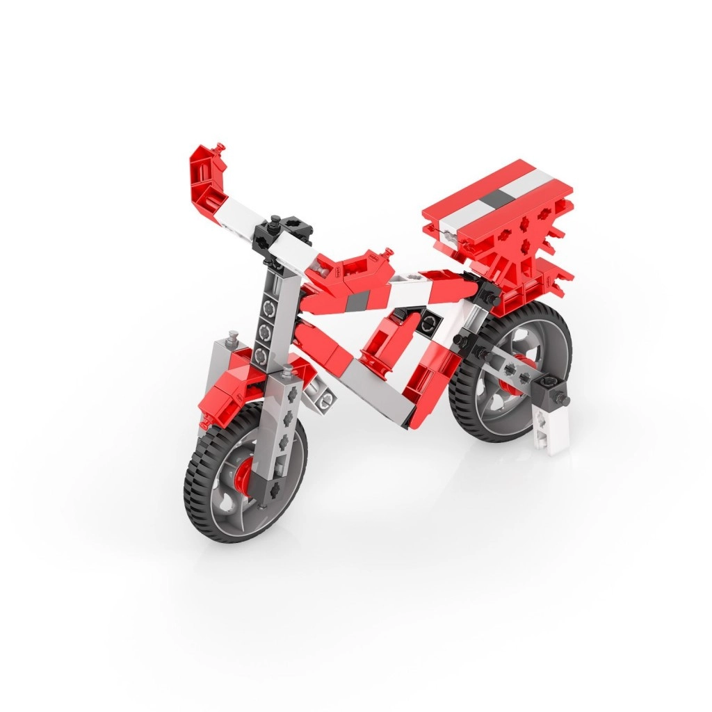 Rozviňte kreativitu a manuální zručnost dětí s robustní stavebnicí ENGINO Creative Builder. Jednotlivé díly snadno zacvaknete a rychle přestavíte na další model – od rychlého auta přes motorku až po letadlo. Díky motorku s volbou směru se vaše výtvory skutečně rozjedou.