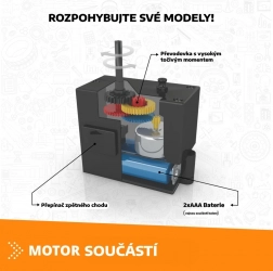 Uveďte své výtvory do pohybu a nastavte směr díky zabudovanému motoru. Vyžaduje 2× AAA baterie (nejsou součástí).