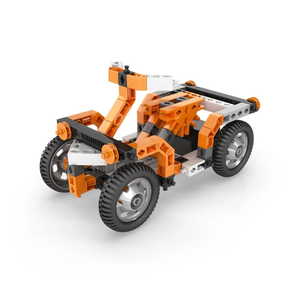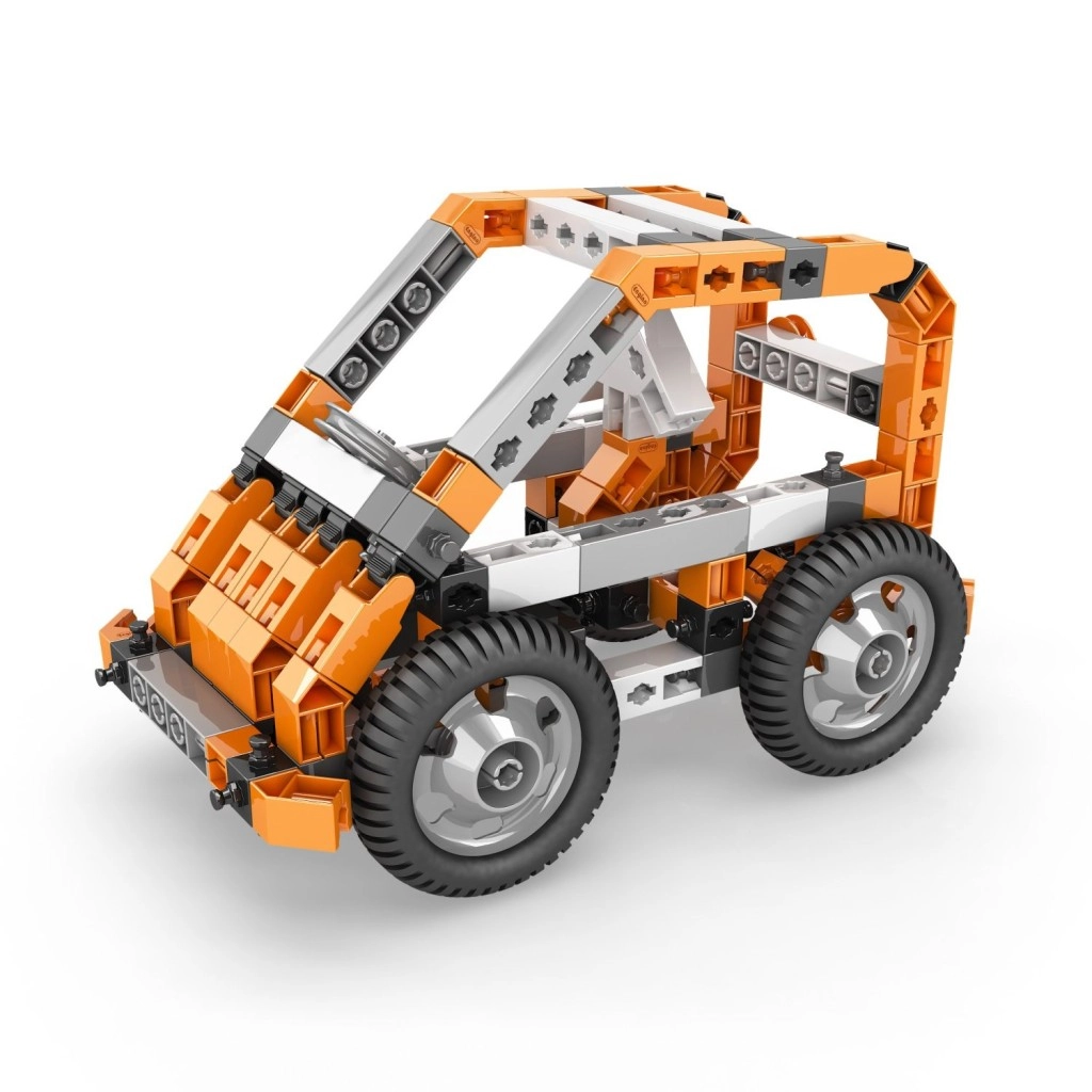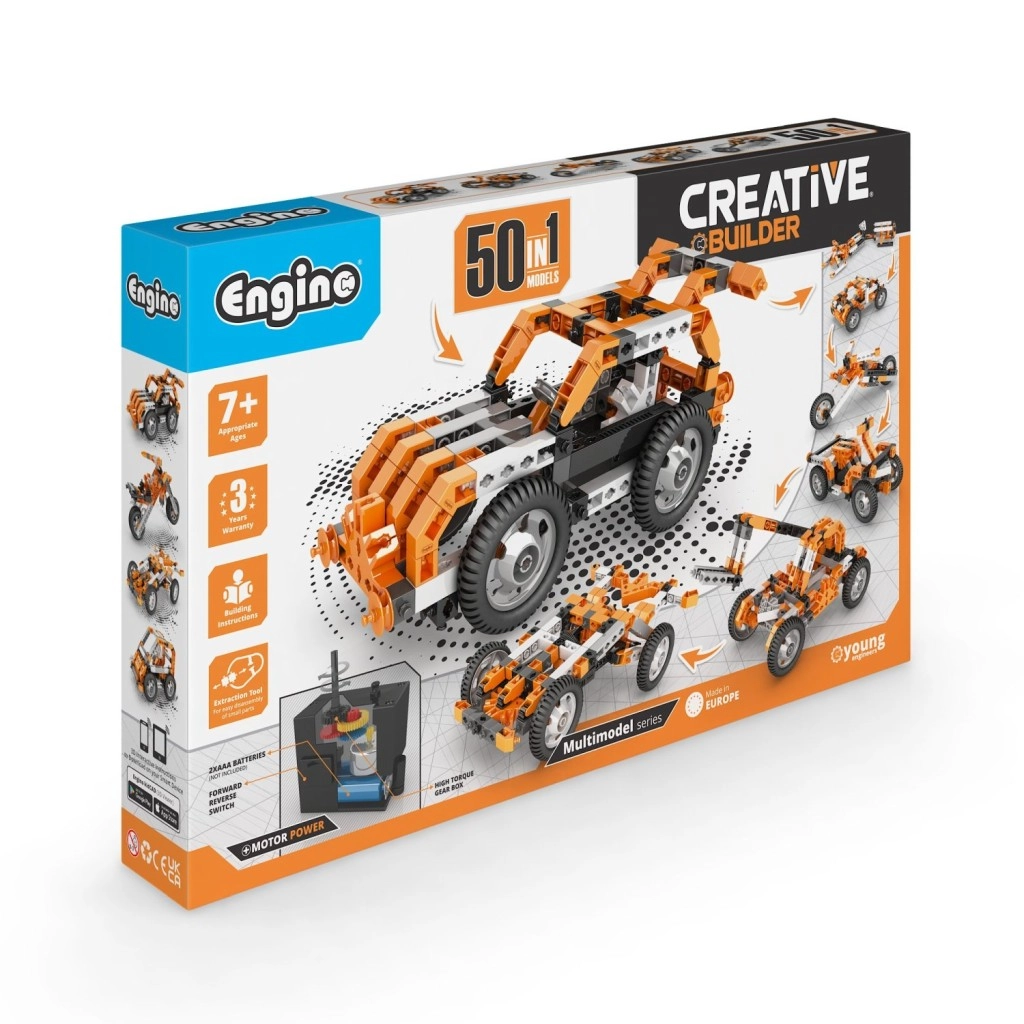 Stavebnice Engino Creative Builder přináší dětem hodiny zábavy a učení. Díky promyšlenému systému dílků lze rychle přestavět jeden model na druhý a objevovat nové konstrukční možnosti. Součástí je motor s převodovkou pro změnu směru pohybu, takže modely opravdu jezdí a otáčejí se.