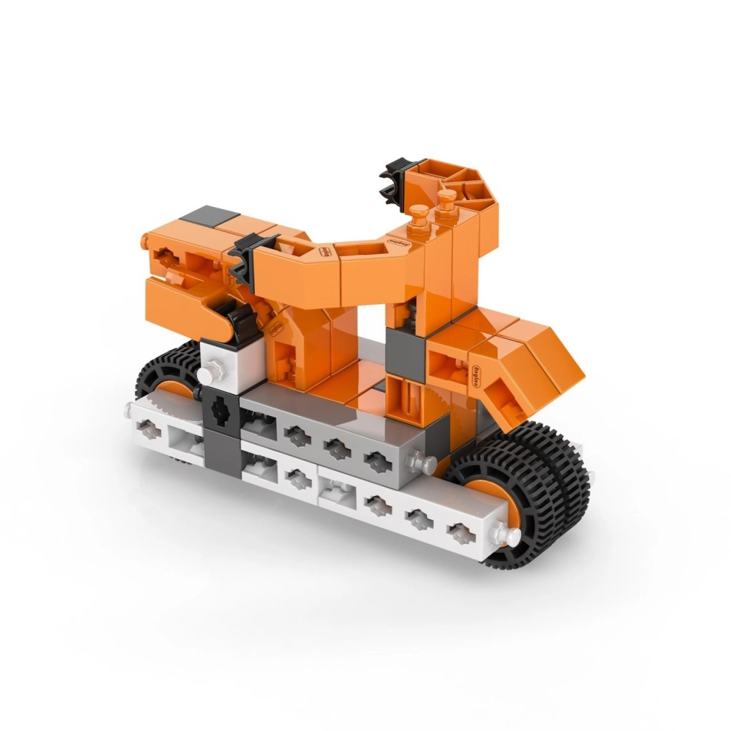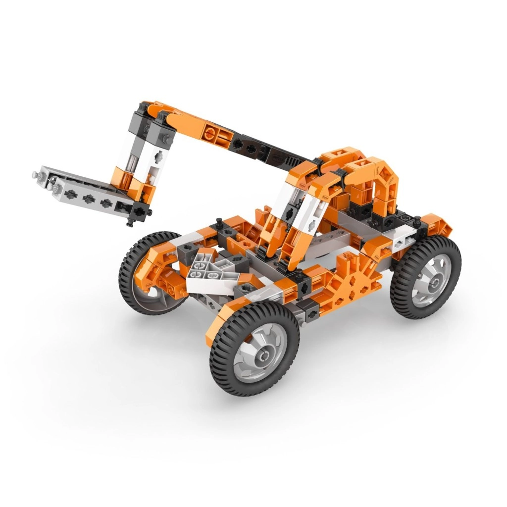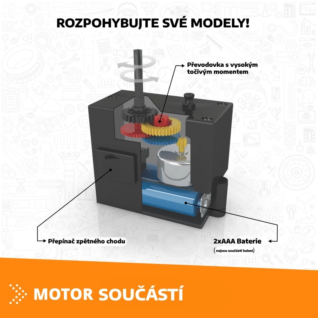 Stavebnice Engino Creative Builder přináší dětem hodiny zábavy a učení. Díky promyšlenému systému dílků lze rychle přestavět jeden model na druhý a objevovat nové konstrukční možnosti. Součástí je motor s převodovkou pro změnu směru pohybu, takže modely opravdu jezdí a otáčejí se.