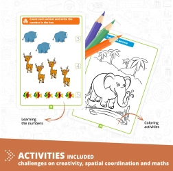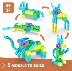 Engino Stavebnice Učíme se - divoká zvířátka nabízí dětem možnost nejen stavět až 5 různých modelů, ale i objevovat zajímavá fakta o zvířátkách. Učte se prostřednictvím zábavných aktivit jako omalovánky, spojování teček nebo procvičování matematiky, a to vše podpořeno aplikací pro Augmented Reality.