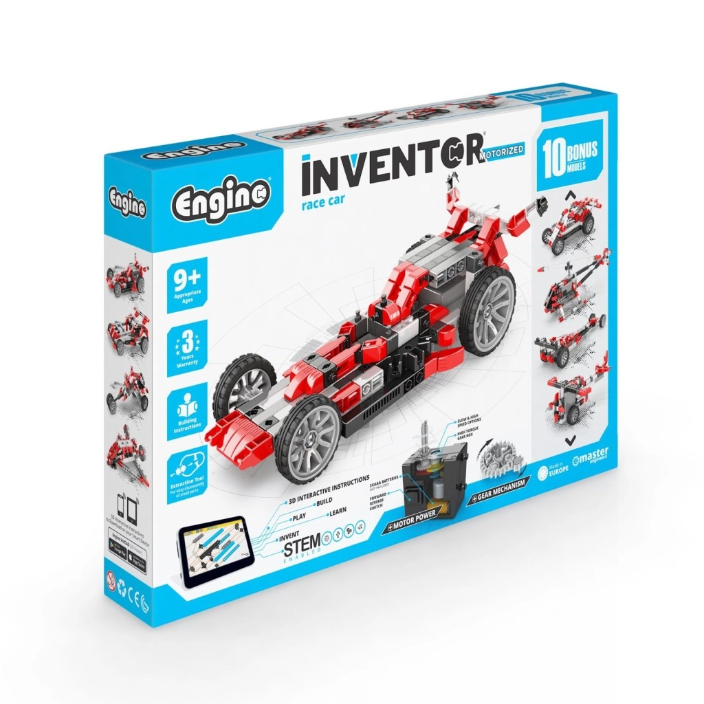 Objevte kreativní stavebnici ENGINO INVENTOR s motorem a převodovkou, ze které postavíte až 10 dynamických modelů – od závodních aut po letouny a stroje. Díky 3D aplikaci kidCAD zvládnou stavbu i začátečníci, zatímco pokročilí ocení pokročilé STEM principy, práci s převody a směrem/rychlostí pohybu. Kompatibilní s dalšími sety ENGINO, vyrobeno v EU, vhodné od 9 let.