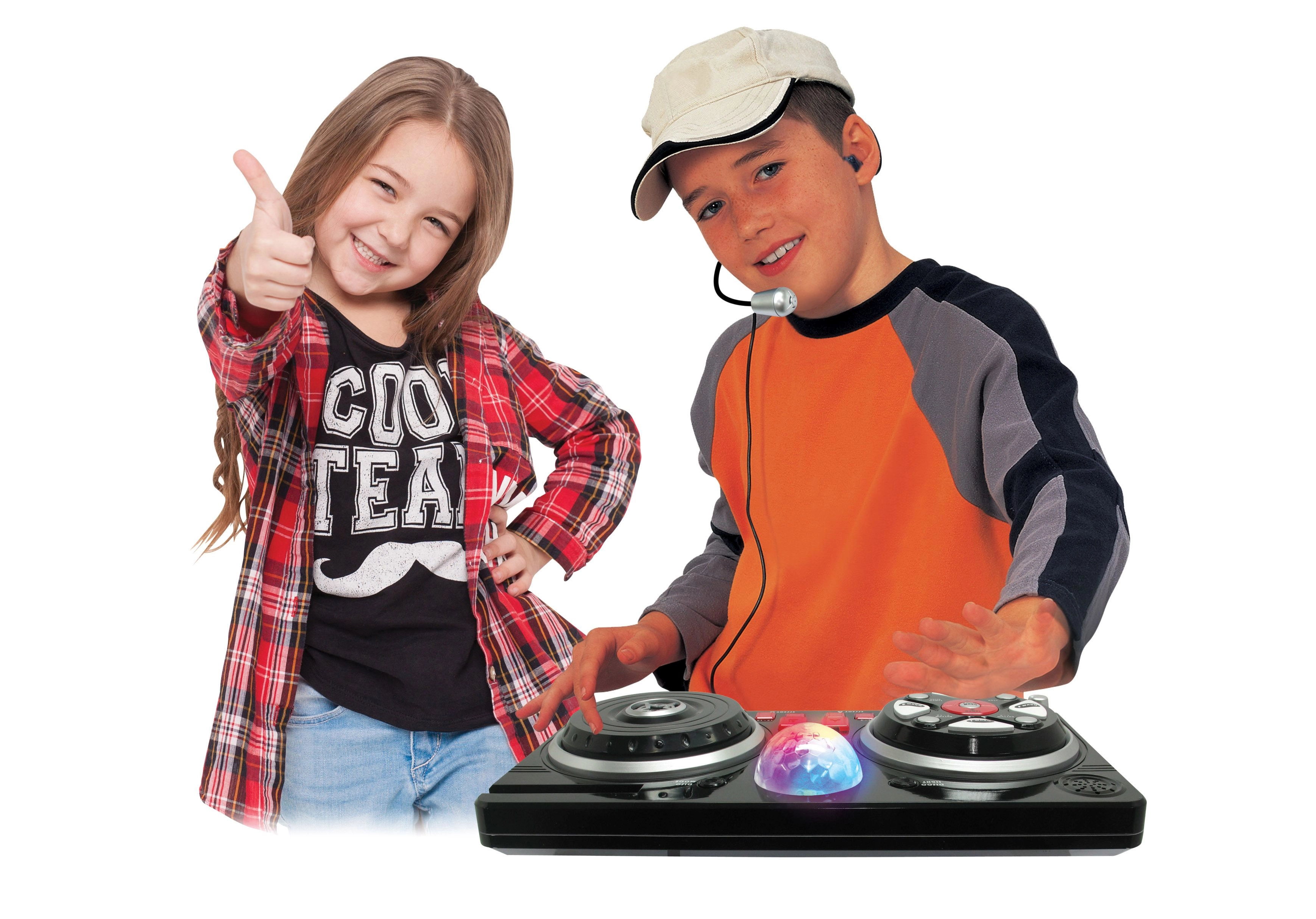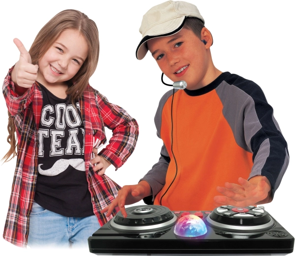 Proměňte dětský pokoj v malé nahrávací studio. Tento mixážní pult s pohodlným hlavovým mikrofonem a svítící disco koulí nabízí bohatou paletu funkcí pro kreativní hraní i první hudební pokusy. Díky připojení mobilu či mp3 přehrávače lze jednoduše pustit oblíbené skladby a mixovat je s beaty a efekty.