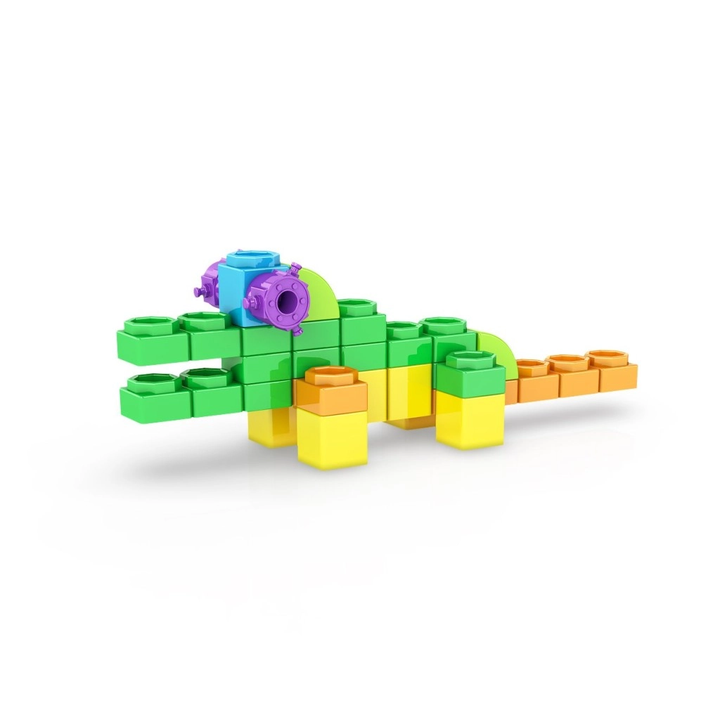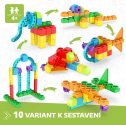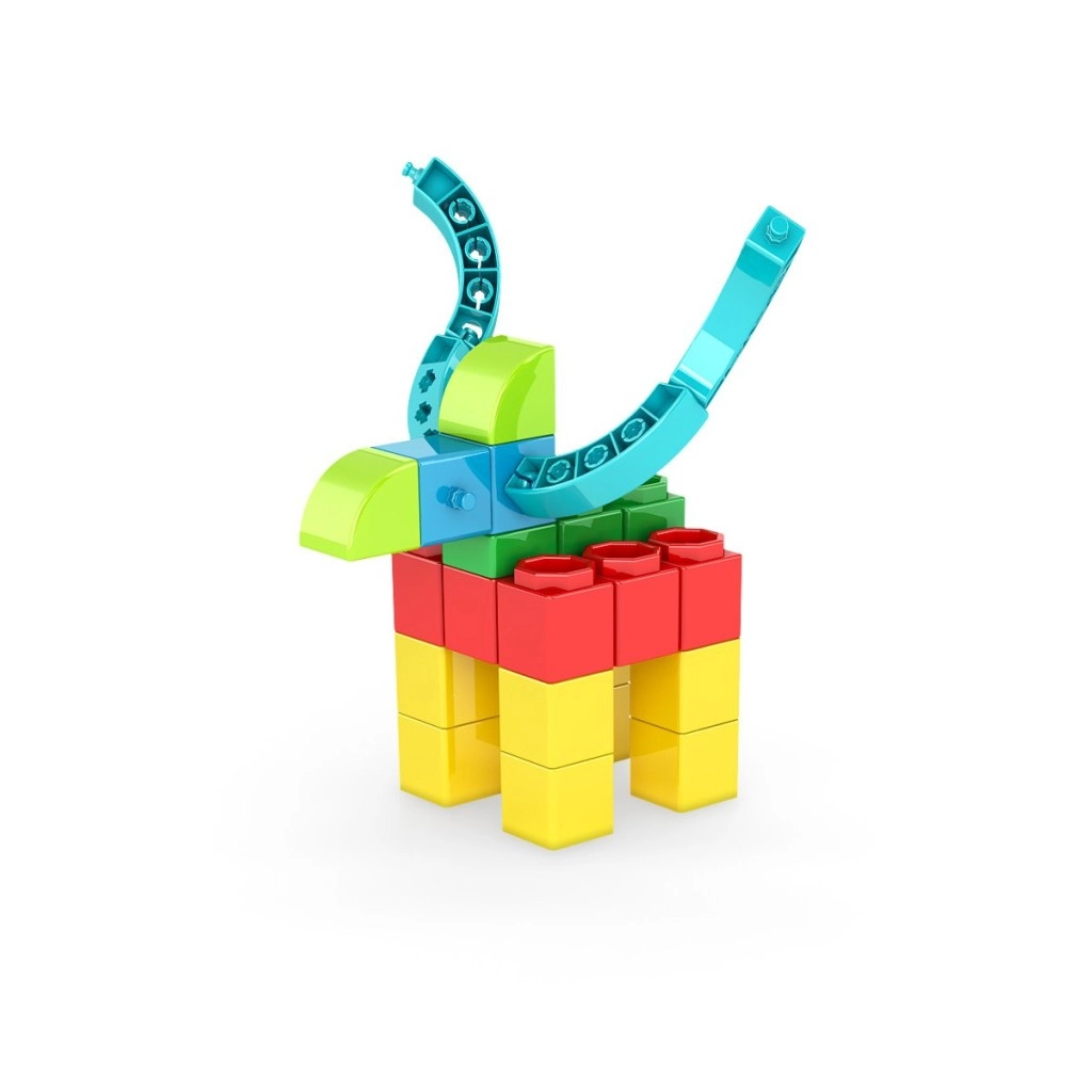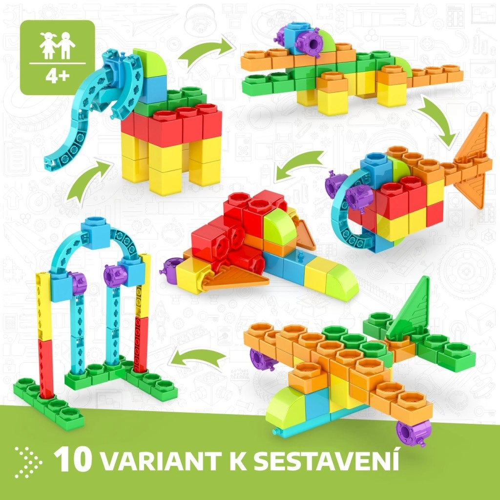 Postavte zvířátka, stroje i vozidla z velkých, barevných a snadno spojovatelných dílků. Variabilita podporuje představivost i jemnou motoriku.