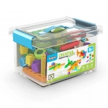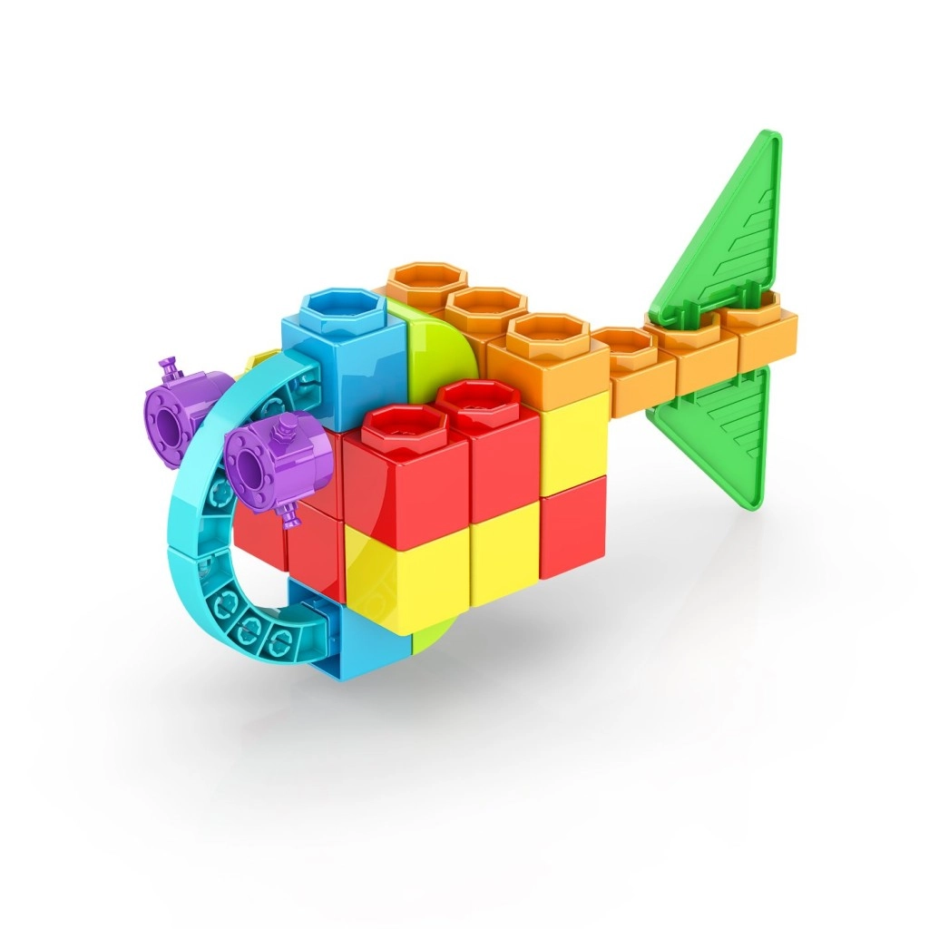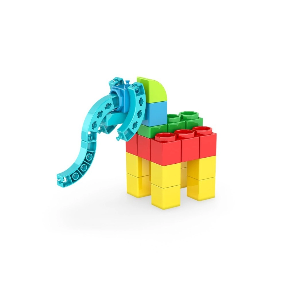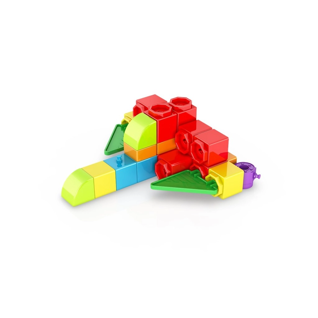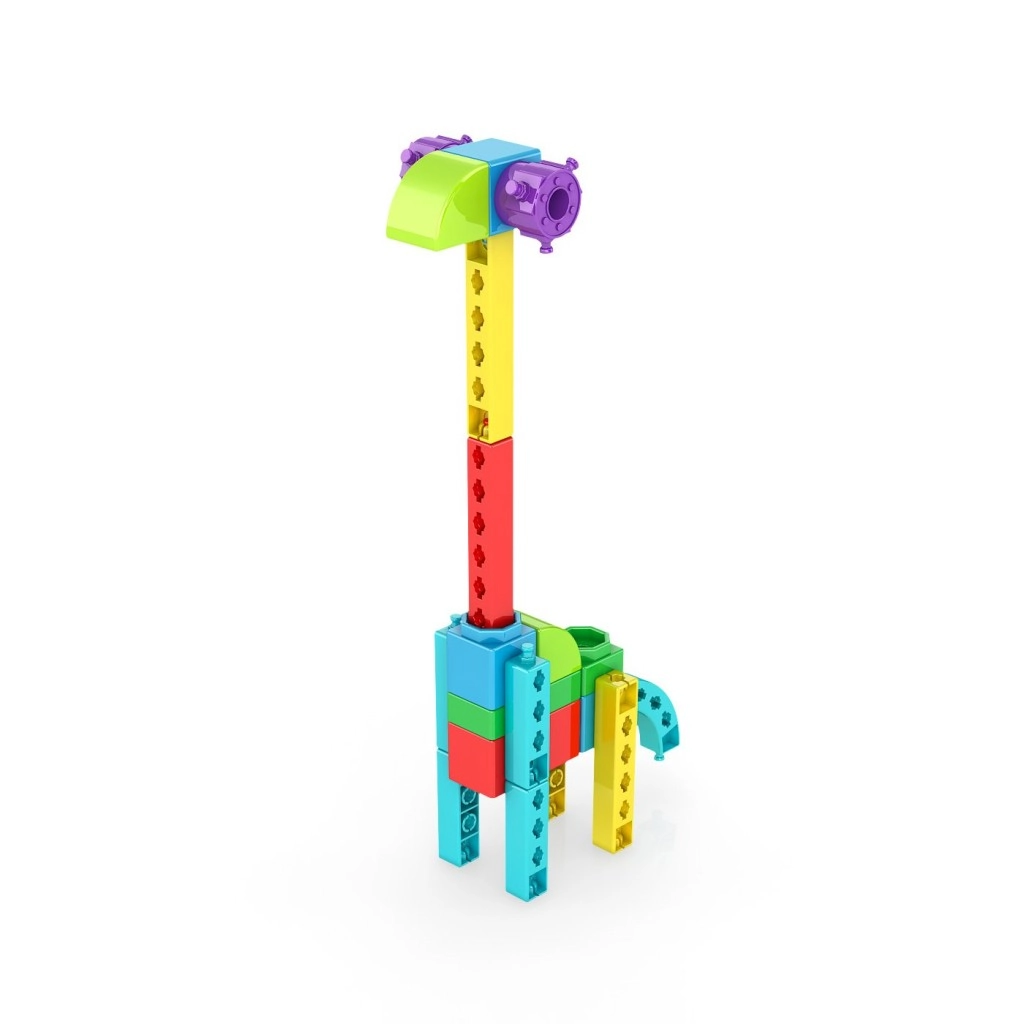 Postavte zvířátka, stroje i vozidla z velkých, barevných a snadno spojovatelných dílků. Variabilita podporuje představivost i jemnou motoriku.