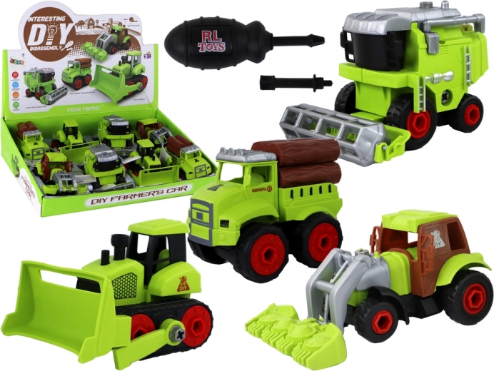 Objevte svět zemědělských vozidel, které se skládají a rozkládají samostatně. Tento set zahrnuje čtyři modely - buldozer, kombajn, cisternový vozík a přepravník dřeva. Každý model je navržen tak, aby odpovídal různým zájmům a tužbám dětí.