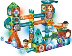Objevte kreativní stavebnici, která spojuje magnetické kostky a svítící kuličkovou dráhu v jednom. Díky LED prvkům a svítícím kuličkám je hra ještě zábavnější, rozvíjí jemnou motoriku, kreativitu a podporuje logické myšlení. V praktickém uzavíratelném boxu najdete celkem 150 dílů včetně návodu, figurek a samolepek.