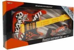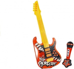 Objevte zábavnou elektrickou kytaru spolu s mikrofonem, dokonale navržené pro malé hudební nadšence. Tato kytara je vyrobena z kvalitního plastu a přichází v zářivě červeno-žlutém provedení. Kytaru zdobí stylové světelné efekty a interaktivní tlačítka, která umožňují snadné ovládání různých písní a zvuků.