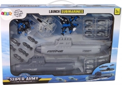 Pusťte se do akční námořní bitvy s kompletní vojenskou sadou pro děti! Dvě realistické ponorky s koly pro snadný pohyb, tři stíhací letouny a množství střel zajistí hodiny zábavy a strategické hry. Ponorka má funkční vystřelovač projektilů – jednoduše nabijete, natáhnete a je tu akční výstřel! Celá sada je vyrobena z odolného plastu, má certifikát CE a je ideální pro malé fanoušky armády od 3 let.