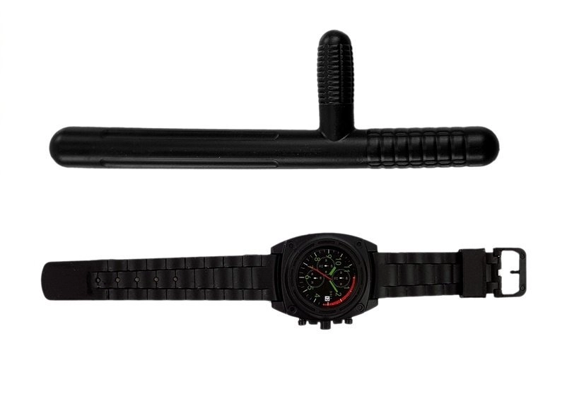 - Helma s gumou a výklopným štítem, pistole a pouzdro, hodinky, vysílačka, pouta s klíčky, odznak k vyplnění, obušek, píšťalka, dalekohled