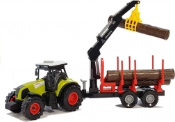 - Traktor, lesní přívěs, 3 dřevěné klády, otočné rameno (jeřáb), baterie