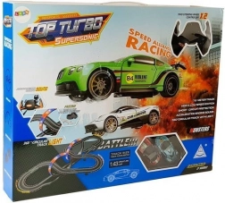 Závodní dráha 1:43 se 2 autíčky Top Turbo se světly, délka 7,6 m