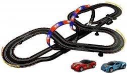 Užijte si dlouhé hodiny napínavých závodů! Tato elektrická závodní dráha kombinuje plynulou jízdu, efektní smyčky a dynamické světelné efekty. Dvě autíčka v měřítku 1:43 (červené a modré) umožní férový závod dvou hráčů současně, zatímco kontrolní pult s přehlednými přepínači zajistí pohodlné ovládání.