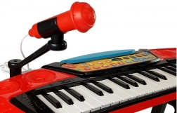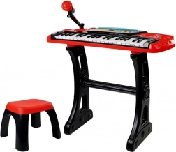 Tento červený dětský keyboard je skvělou volbou pro malé muzikanty. Podporuje sluch, rytmus i kreativitu a motivuje děti k vlastním melodiím. Součástí je stabilní stojan a pohodlná stolička, takže dítě může ihned začít hrát.